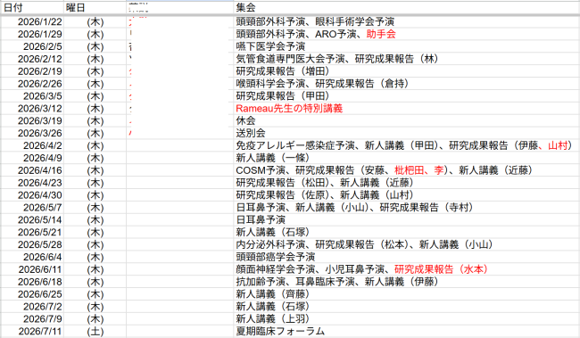 医局集会・行事予定・抄読会予定