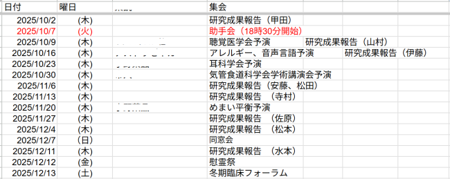 医局集会・行事予定・抄読会予定